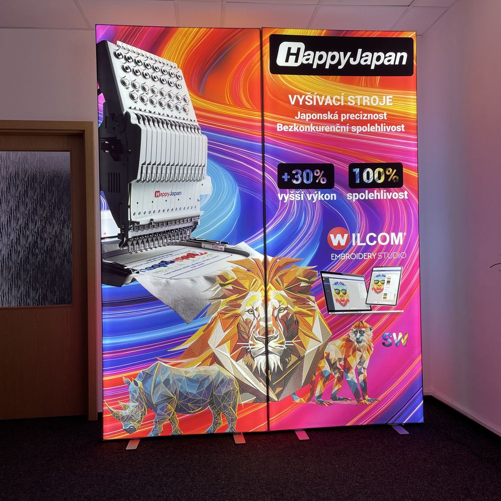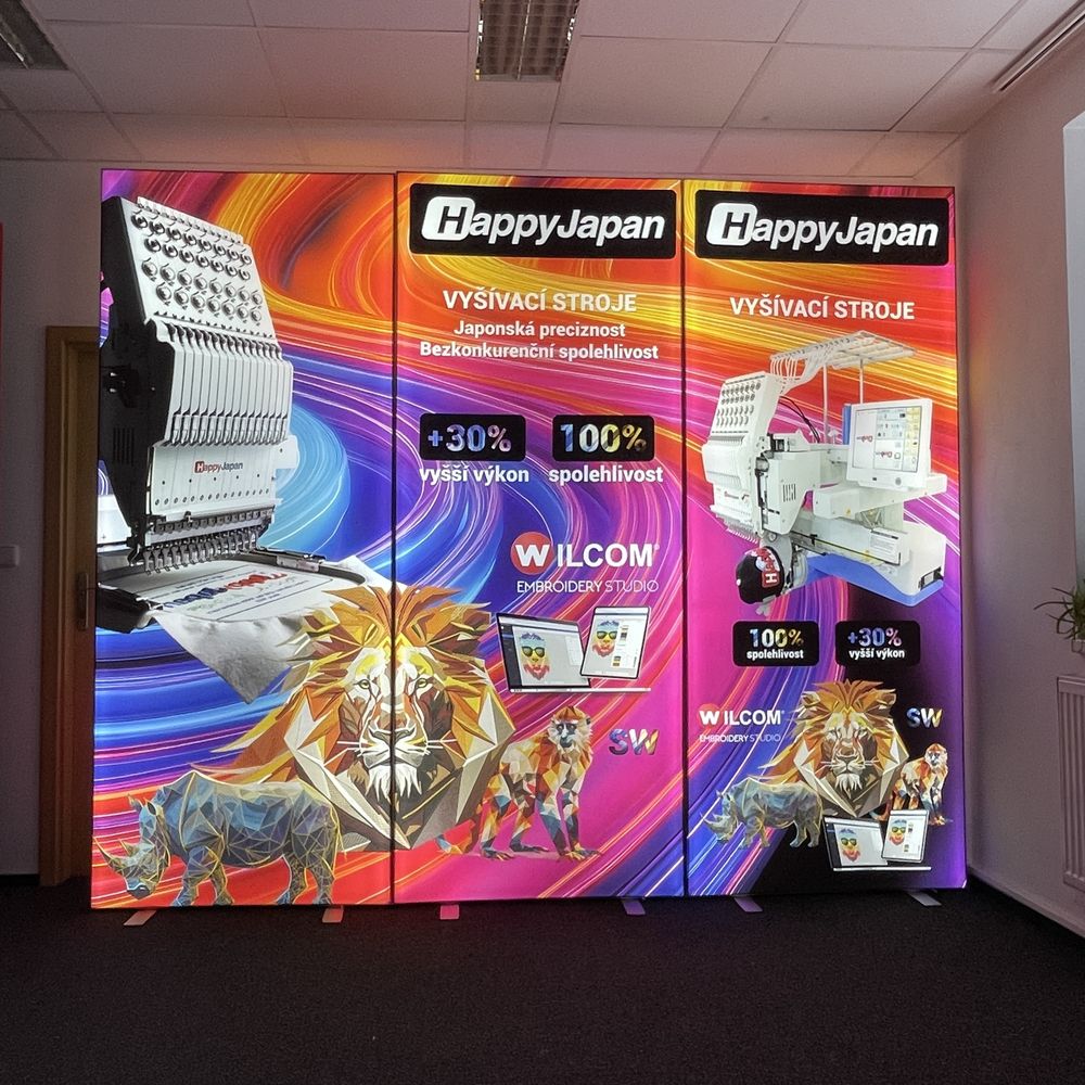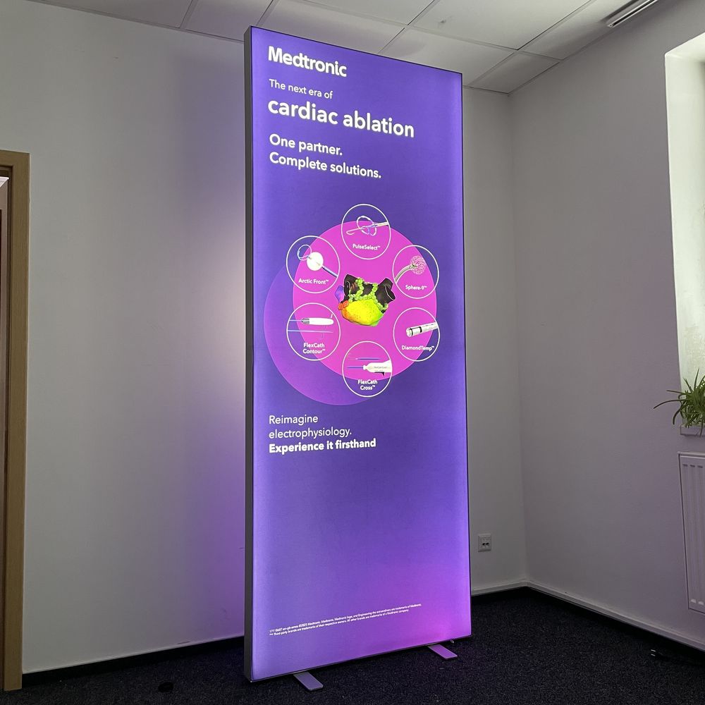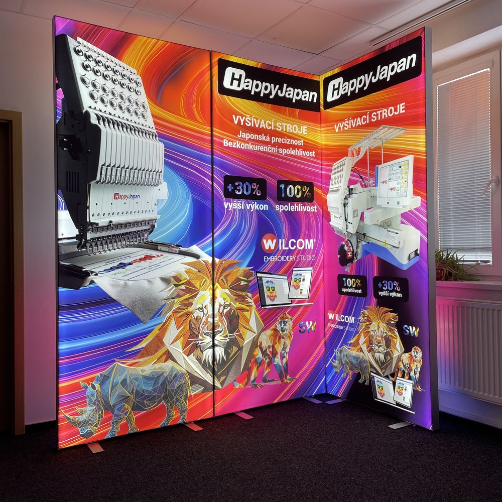 Výměnitelné grafické panely: Textilní grafické panely lze rychle a snadno vyměnit, což umožňuje pravidelnou aktualizaci obsahu